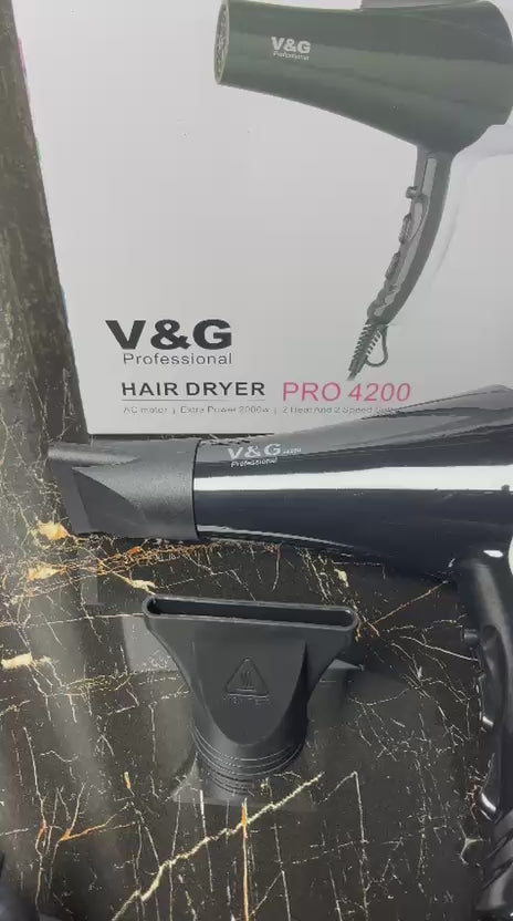 - V&G Professional Hair Dryer PRO 4200 – 2000W Powerful AC Motor | Salon-Grade Fast Drying Hair Dryer